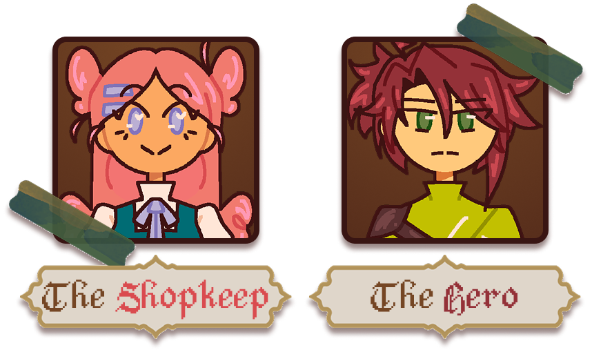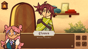 Elowen is a shopkeeper at humanity's final bastian before the demon forces. Whilst others cower and flee, she simply wipes the counter, restocks the shelves, and turns the store sign to "Welcome In!" It's in the predicted final days of the world when an adventurer, the hero of legend, comes across her shop, begging time and time again for her to escape. Unluckily for him though, Elowen is the model essential worker, and knows that as long as there's a hero looking to save the world, they'll need an item supplier covering their back, and for that, she's their girl.